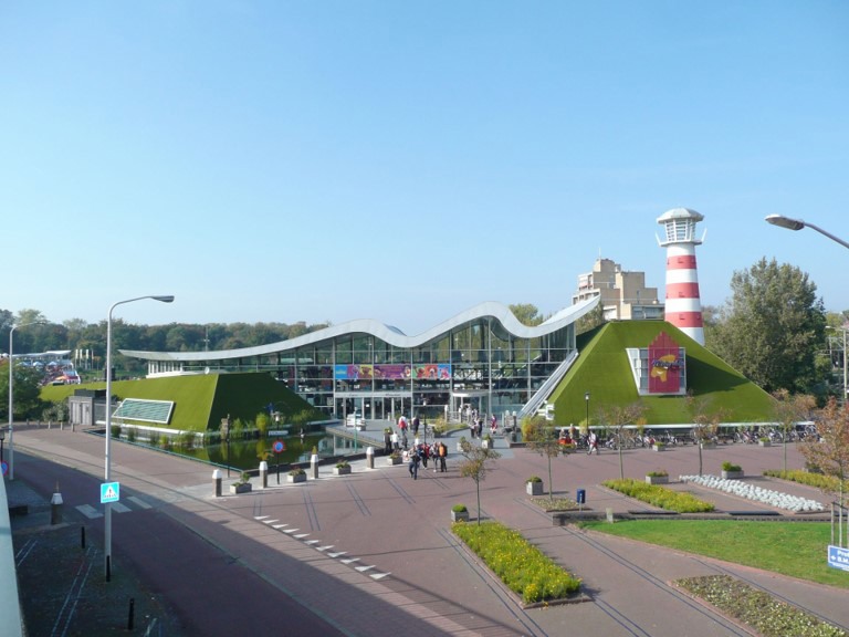 Madurodam is uitgebreid met een aantal nieuwe hallen. Deze hallen zijn geïntegreerd in het park door deze onder andere te voorzien van een groen dak met vegetatie tot twee meter hoog.