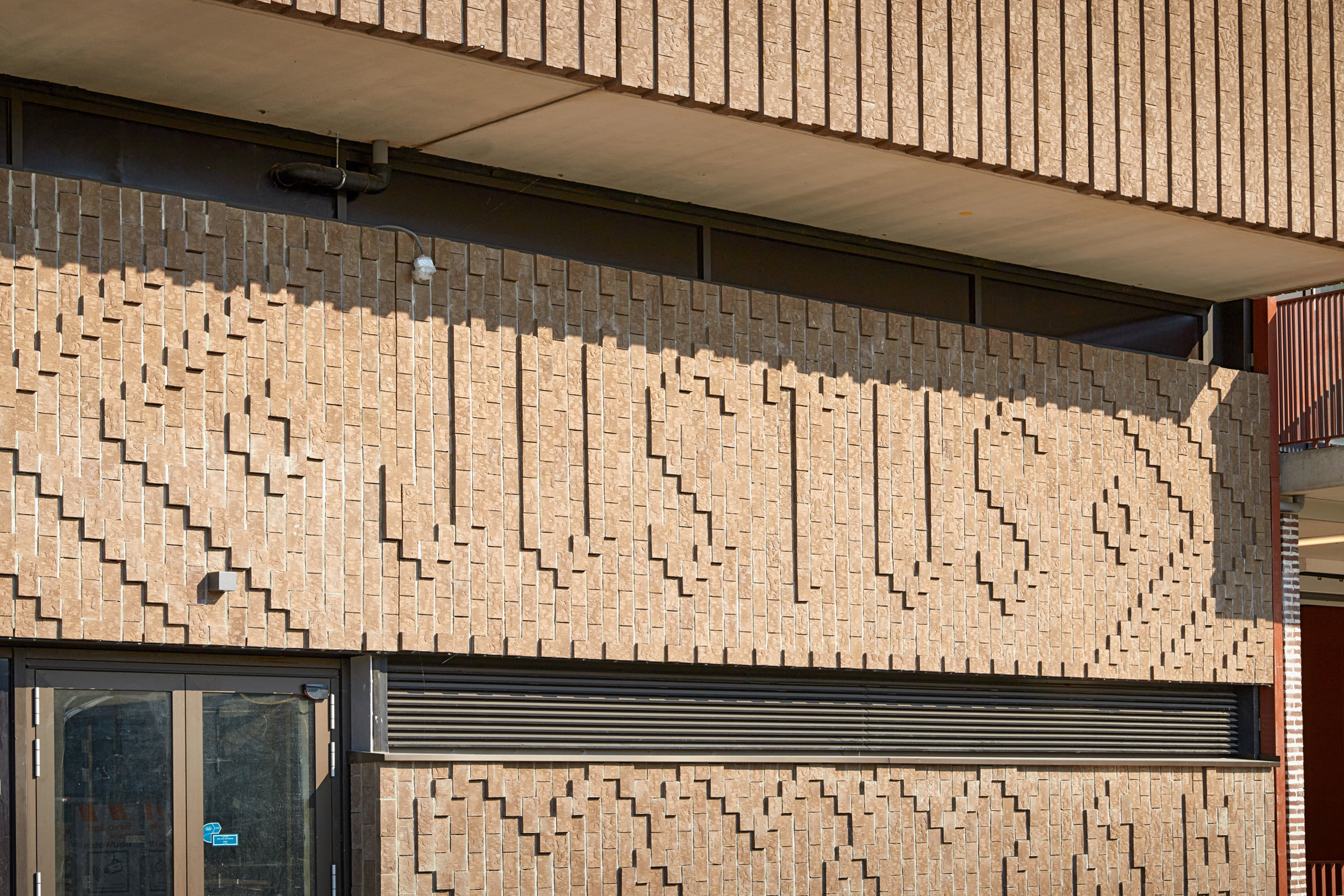 Onder de laagbouw is een kleine parkeergarage voor 38 auto's gerealiseerd.